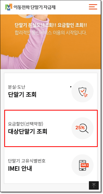 - 요금할인 대상 단말기 조회