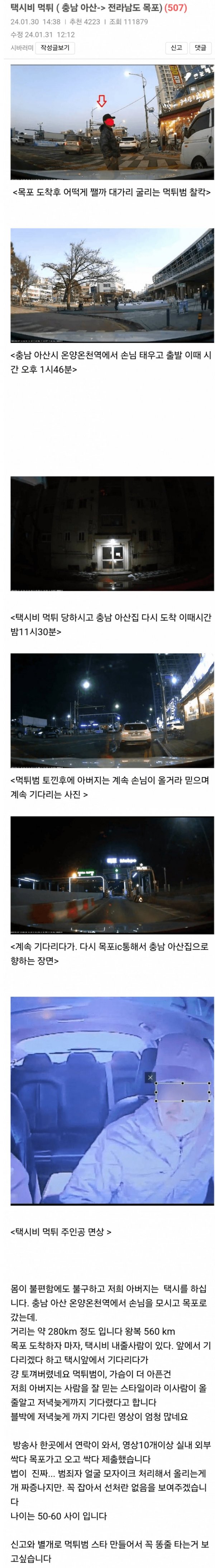 지난 31일, 온라인 커뮤니티에 충남 아산에서 출발해 전남 목포까지 택시로 이동한 뒤 택시비를 내지 않고 사라진 사연이 공개돼 공분이 일고 있습니다.