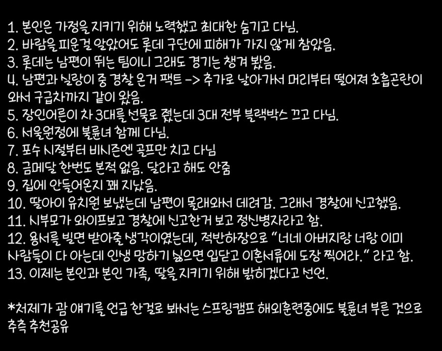 바람을 피운걸 알았어도 롯데 구단에 피해가 가지 않게 참았음.