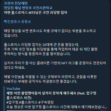 유투브에 코인채널들 많죠? 더 많은 정보를 보고싶으시면 이 채널로 말씀 부탁 드립니다식의 말이 적혀 있으면 십중팔구 사기임