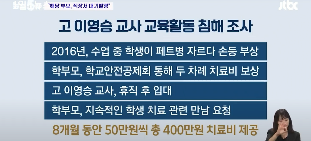 의정부 호원초등학교 교사인 이영승씨의 악성 민원으로 알려진 학부모 A씨가 직장인 농협에서 대기 발령 조치를 받았습니다. 이 사건은 '페트병 사건'으로도 불린 것으로 알려져 있습니다. A씨