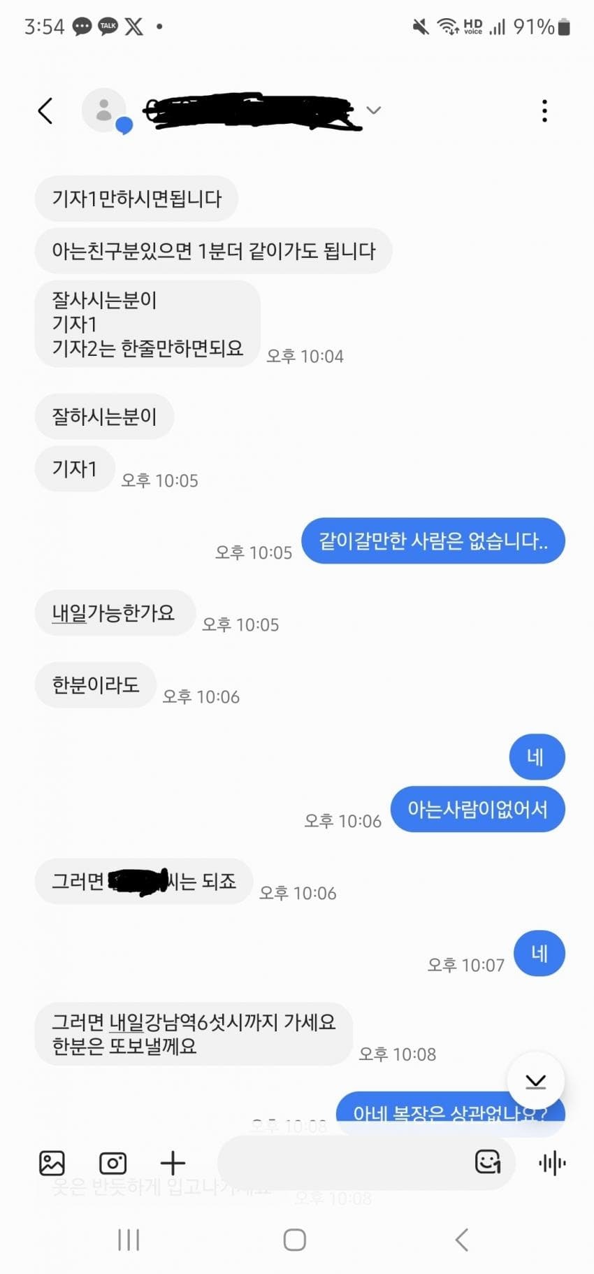 올해 1월 22일 역할대행 알바건으로 기자인척 인터뷰를 요청하는 역할을 의뢰받았습니다.