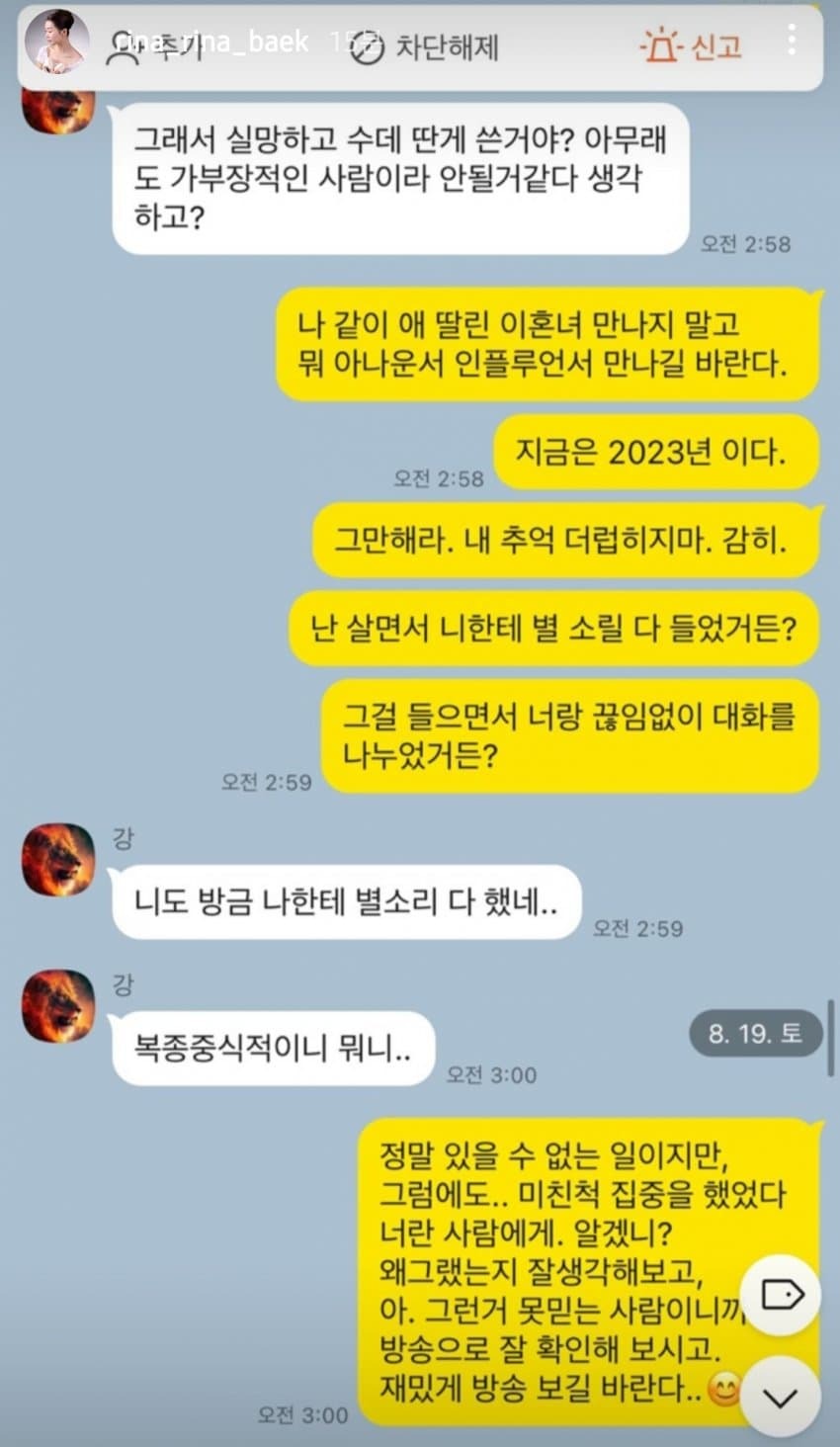 이러한 논란으로 인해 상철은 출연 중이던 웹 예능 프로그램에서 하차하고, 영숙은 SNS 계정을 비공개로 전환했습니다.