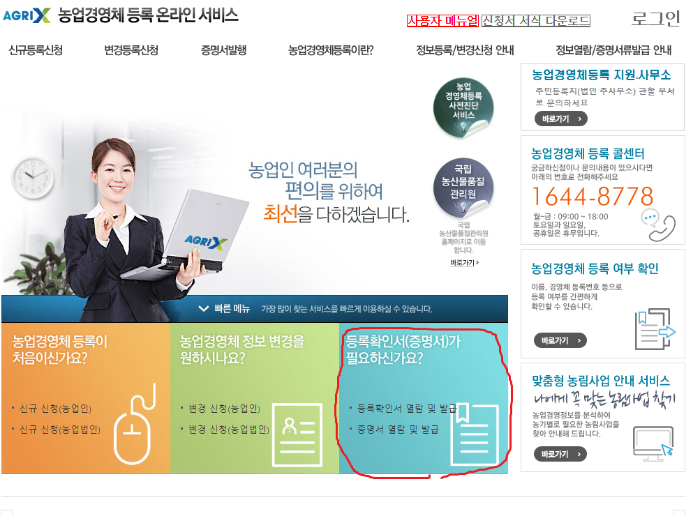농업경영정보 등록 확인서 발급 방법